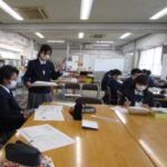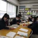4/20(月)は看護・介護クラスが実施されました。参加者は、看護・介護を希望する3年生3名と2年生5名、家庭クラブ3名、図書委員1名の合計12名の参加がありました。看護からは、心筋梗塞、困窮女性、小児がん、骨粗鬆症、がんサバイバーシップ(がん患者と家族を社会全体で支える取り組み)の記事が選ばれていました。介護からは、「パロが介護者の負担軽減」、「認知症に優しい図書館」、「点字ブロック音声案内」という新しい発明や取り組みが紹介されていました。参加者は、「記事の読み取りやまとめが難しかったけど、他の発表も聞けて楽しく知識を得られた」と話していました。